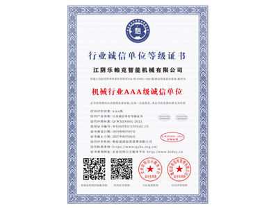 機械行業AAA級誠信單位